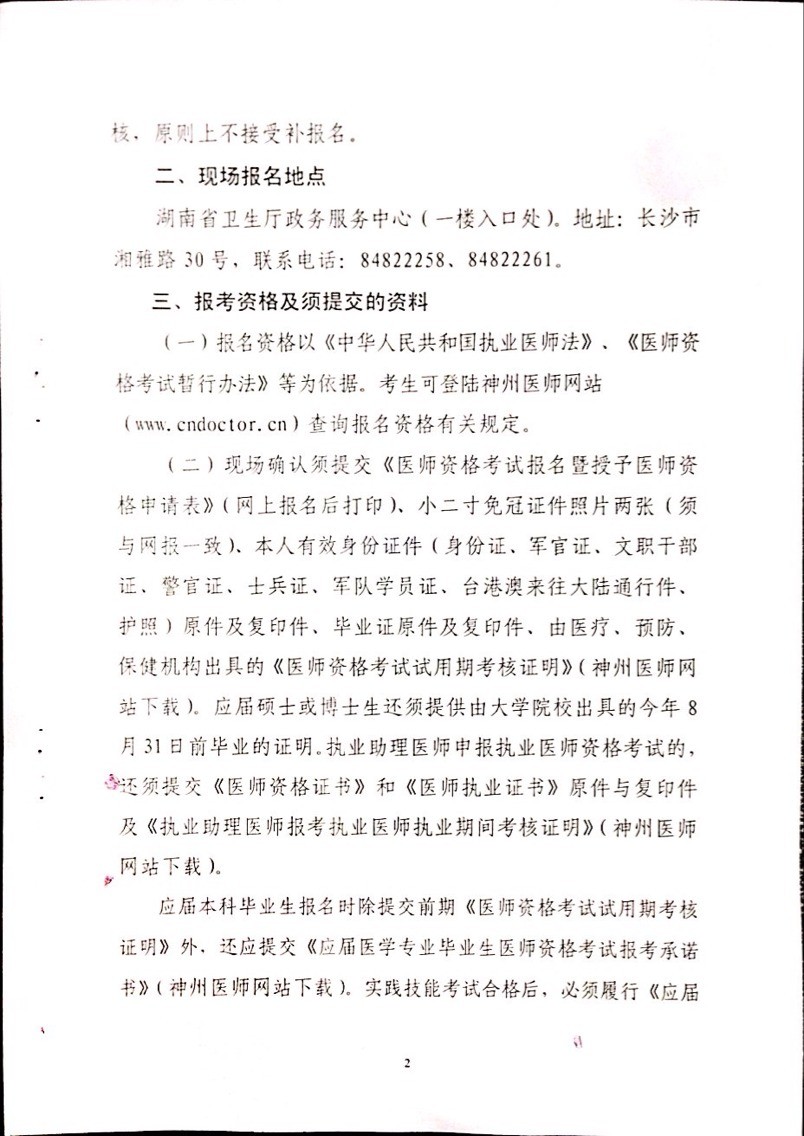 湖南考区省直考点关于2014年医师资格考试报名通知:
