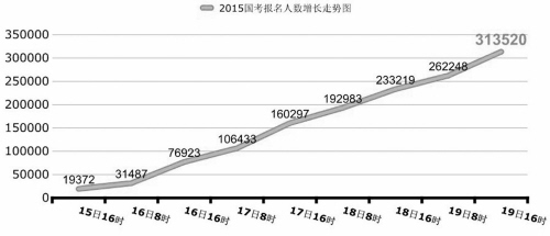 10月19日,2015年国家公务员招录报名已进入第5天。截至16时,全国报名审核人数已达313520人,单日增长80301人,平均每天以超6万人的速度增长。但与去年同期的37万人、前年同期的39万人相比,差距还很大。平均竞争比为14:1,也远不及去年同期及前年同期的19:1。报名还剩5天时间,难道今年国考热会降温吗?