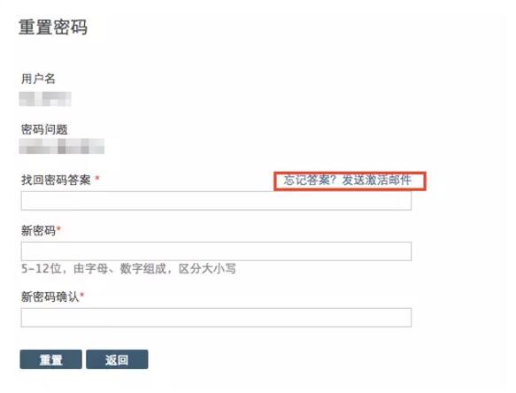 如果忘记密保问题,还可以点击「忘记答案?发送激活邮件」通过邮箱找回。