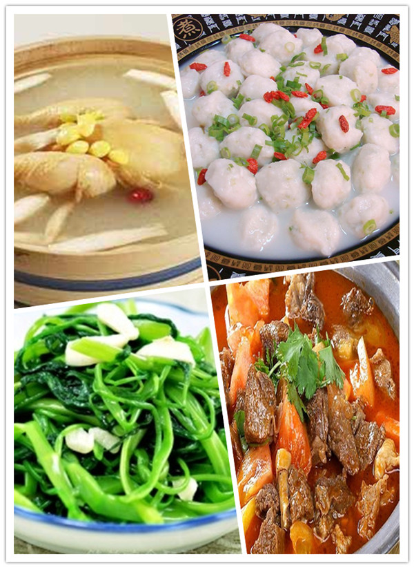中餐:墨鱼丸子炒青菜炖牛肉鸡汤