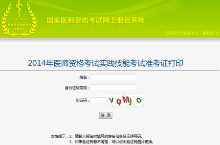 医学考试网2014执业/助理医师技能操作考试准考证打印入口:http://www.nmec.org.cn/viewscore/ViewPrintJNZKZ_Login.aspx