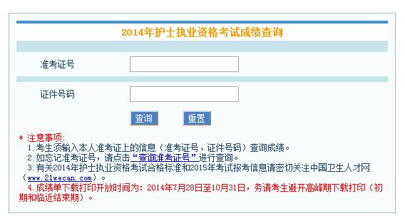 >>点击进入中国卫生人才网2014年护士资格证考试成绩单打印入口<<
