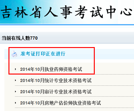 吉林人事考试网2014年执业药师考试准考证打印入口:http://wsbm.jlzkb.com/wszkz/webregister/index.aspx