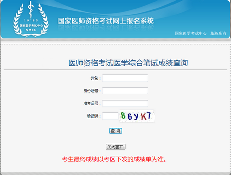 2012年执业/助理医师考试成绩查询时间12月18日;
