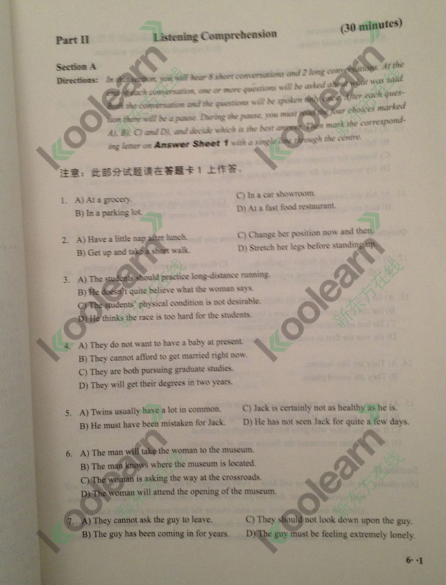 听力 | 2014年12月英语六 级听力真题及答案汇总 |