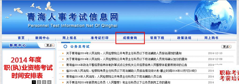 2014年执业药师成绩查询入口青海人事考试中心网:青海执业药师考试成绩查询官方网站为青海人事考试中心网(http://www.qhpta.com/),2014年成绩查询时间尚未确定,请关注新东方在线执业药师频道,我们将会在第一时间发布相关信息。