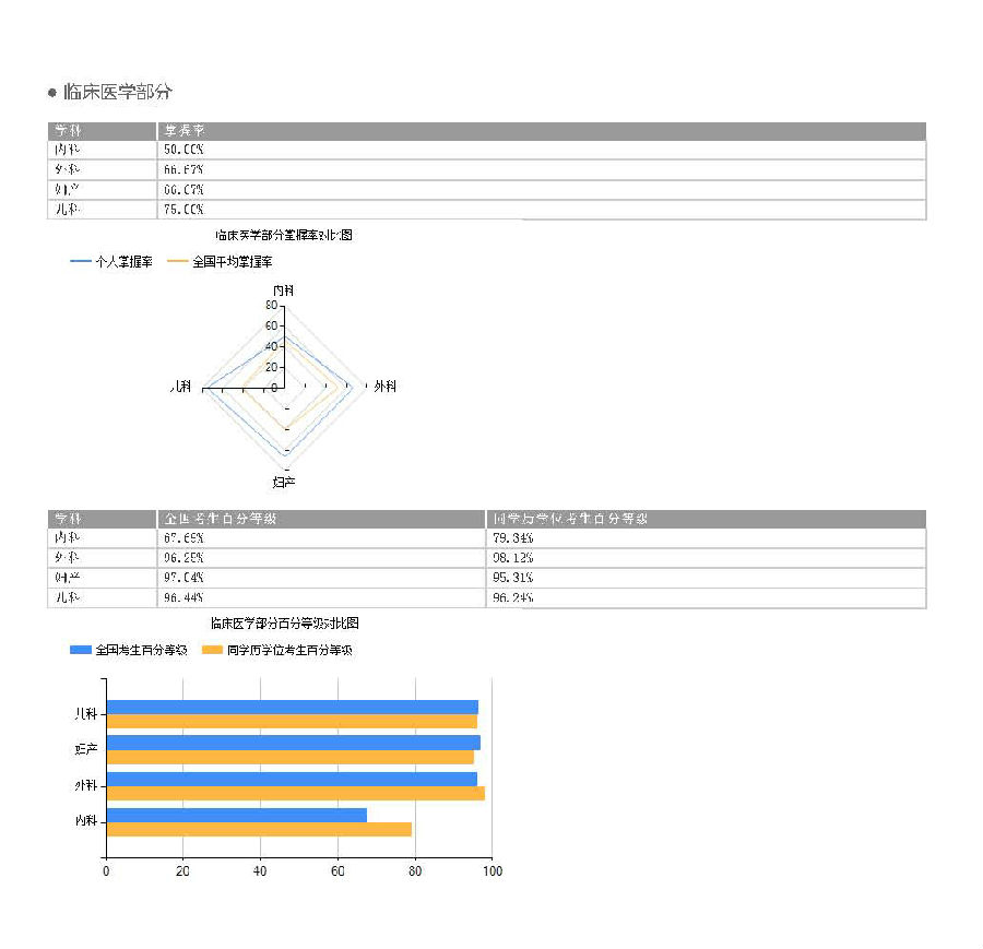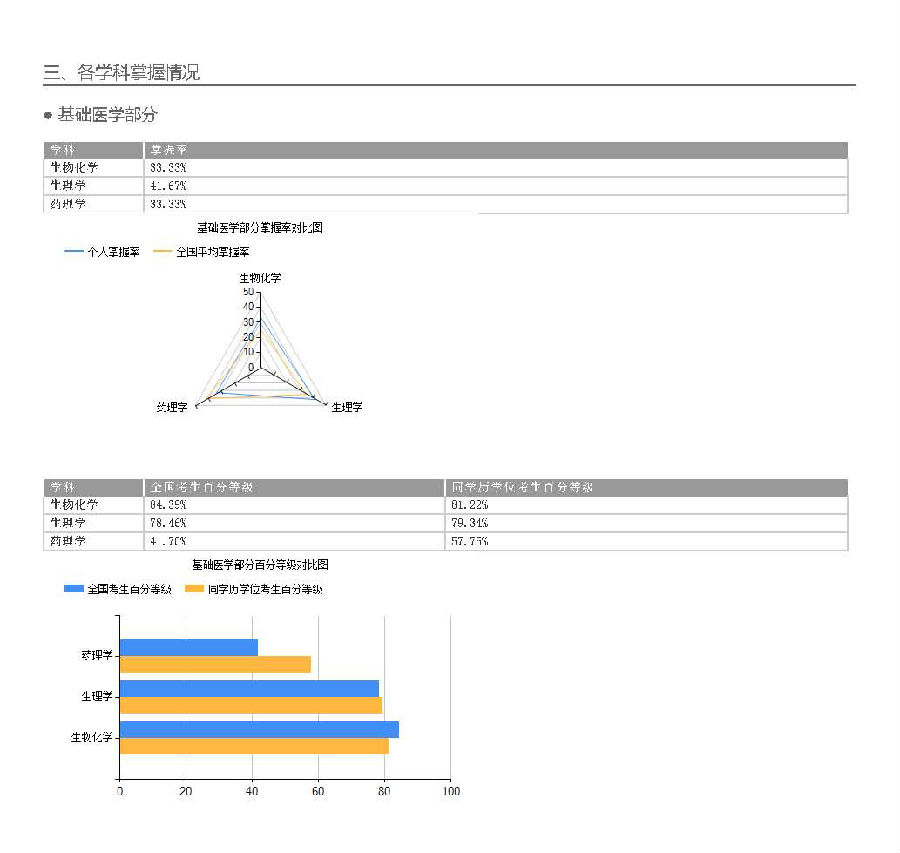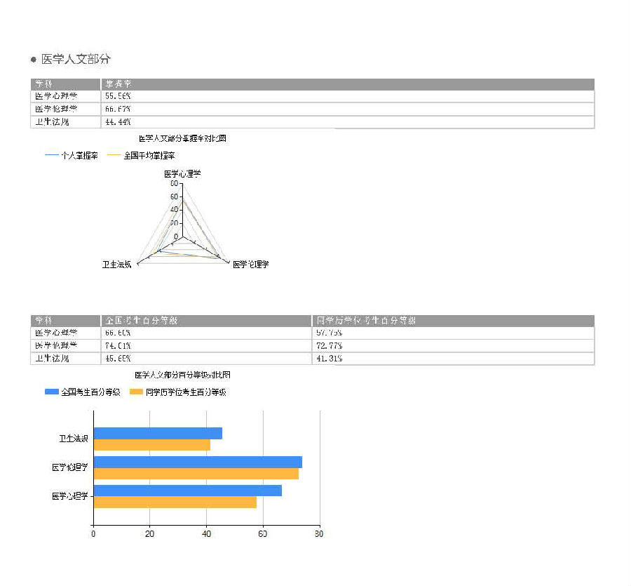 为使广大考生了解自己在医师资格考试医学综合笔试中的知识掌握情况,国家医学考试中心将向考生有需求的提供医学综合笔试学科成绩分析服务(见附例),该项服务将在2014年医师资格考试综合笔试成绩公布后开通,特此通知。