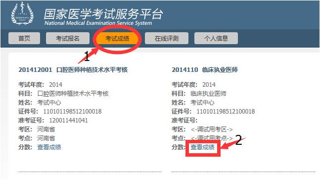 国家医学考试网发布2014年医师资格考试成绩查询方式: