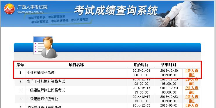 广西人事考试网2014年执业药师成绩查分入口于2015年1月4日开通,提醒考生在尽快在规定时间内查询自己的执业药师考试成绩。以下是新东方在线整理的广西人事考试网2014年执业药师成绩查分官方入口。