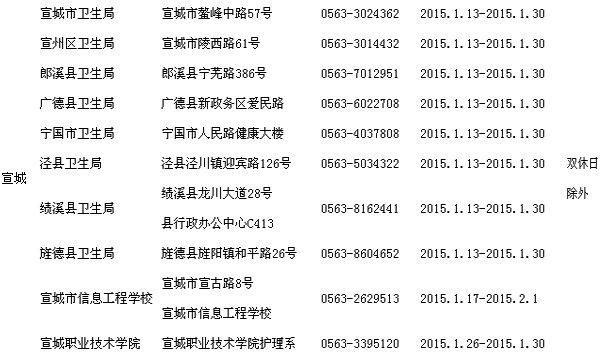安徽宣城2015年护士执业资格考试报名现场确认时间|地点: