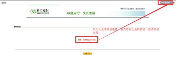 部分考生在缴费时,可能遇到“会话超时”或“抱歉,没有指定支付方式”的错误,如下图所示: