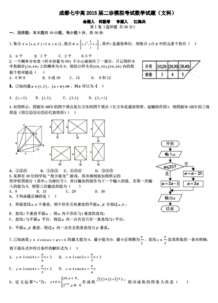 本文关键字: 成都七中高三二诊模拟考试 模拟数学试题