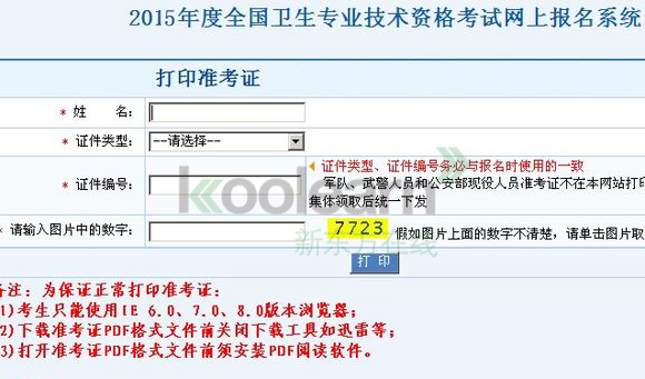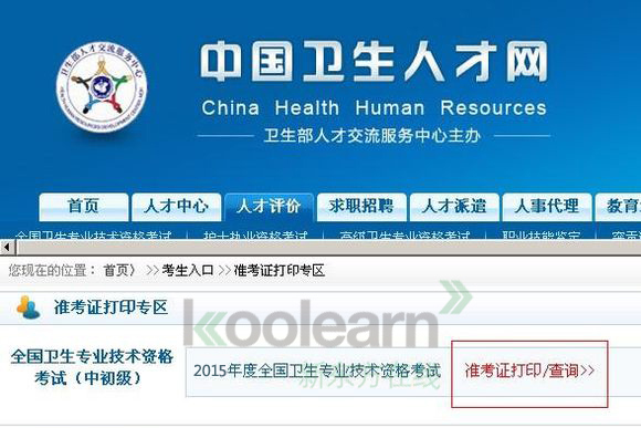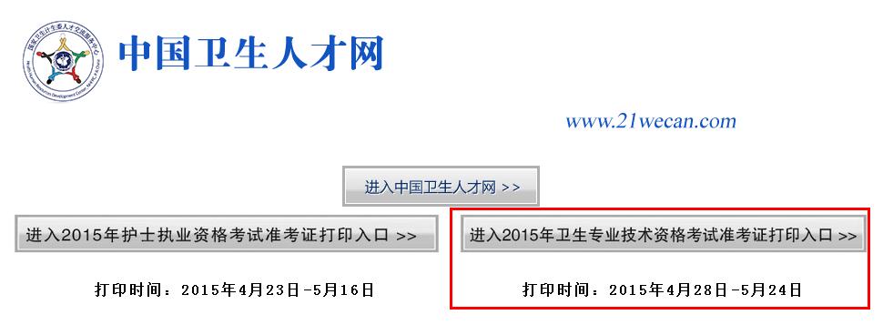 打印网址:中国卫生人才网-2015年全国卫生专业技术资格考试准考证打印入口>>