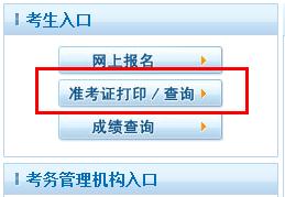 第二步:点击网站首页左中部准考证打印按钮,如图所示