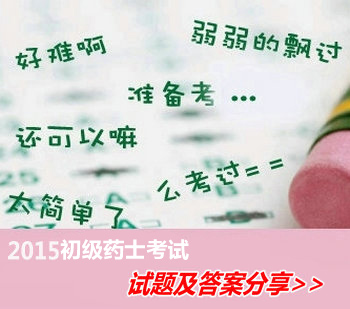 2015年药士考试试题及答案分享讨论:2015年药士考试已经结束了两门科目的考试,大家考的怎么样呢?目前考生最关心的就是2015年药士考试试题及答案的问题了,论坛已经第一时间开通了分享讨论专区,大家一起来分享讨论2015年药士考试试题及答案吧。