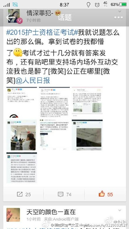 微博热议2015护士资格考试: