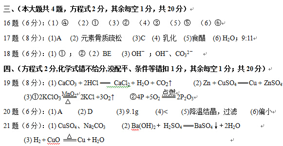 天津南开区2015中考化学一模试题答案