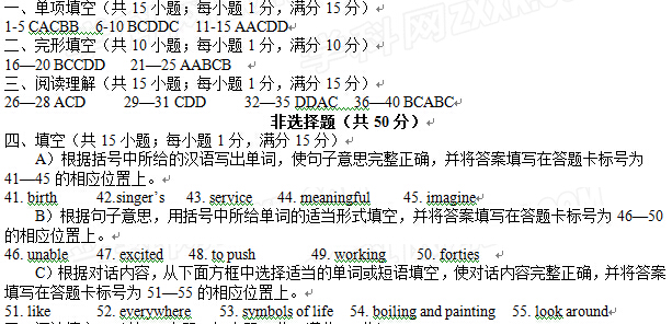 南京玄武区2015中考英语一模试题答案