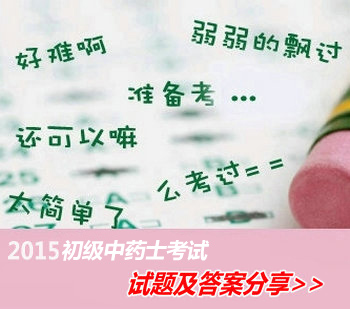 2015年中药士考试试题及答案:2015年初级中药士考试于5月23日进行,考试之后,考生最关心的就是初级中药士考试试题及答案,为方便广大考生分享考试试题及答案,新东方在线医学网第一时间开通了2015年中药士考试试题及答案讨论区,大家一起来分享吧。