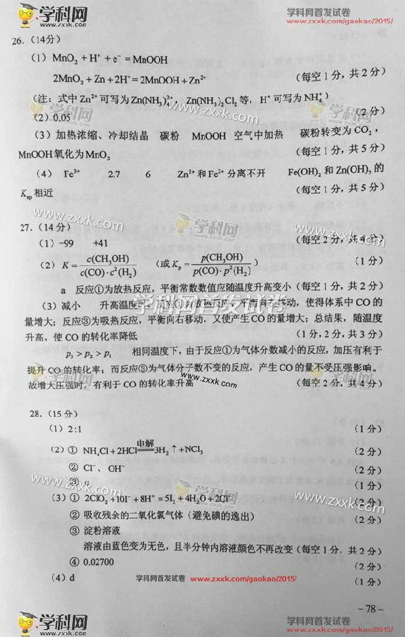 2015广西高考理科综合答案