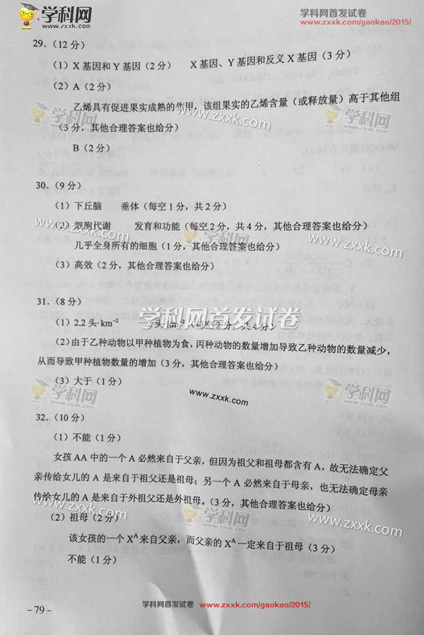 2015广西高考理科综合答案