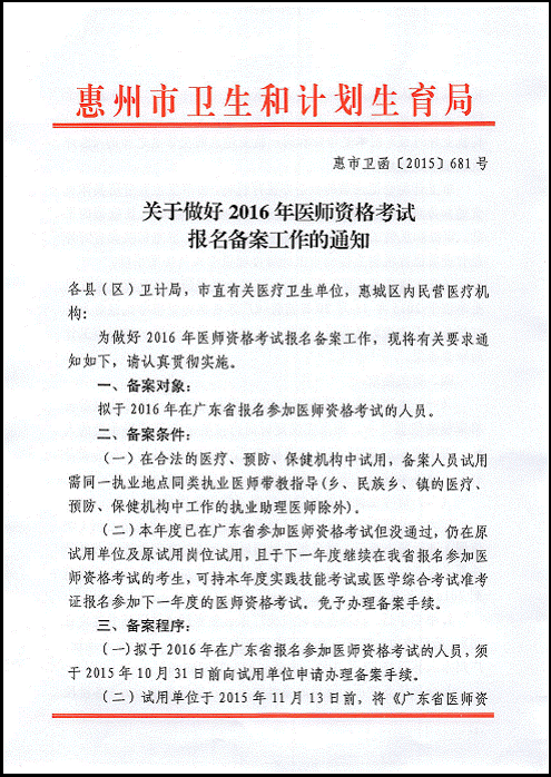 摘要:惠州市2016年医师资格考试报名备案工作的通知