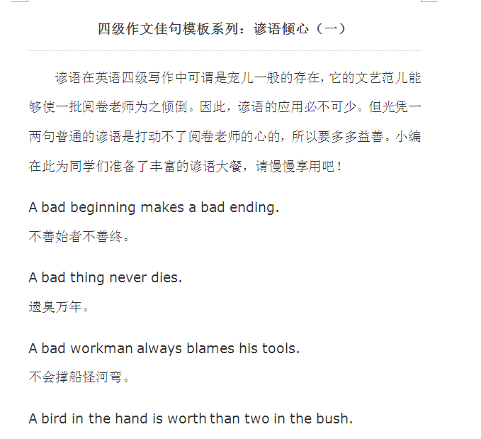 四级作文佳句模板:谚语倾心(一) word下载