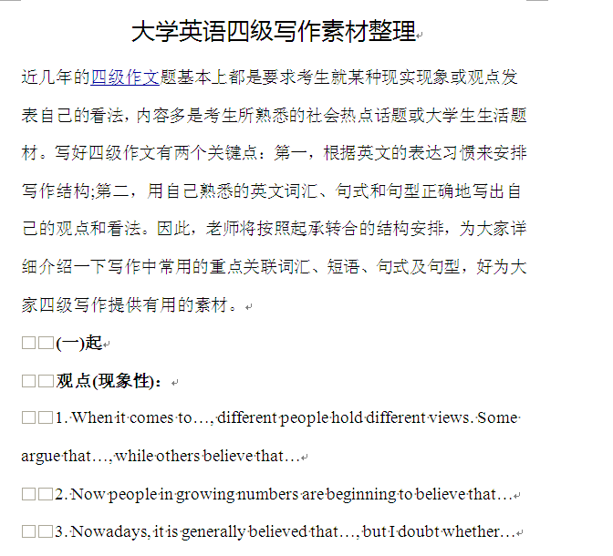 四级考试在即,你的作文准备的怎么样了,这有名师整理的四级写作素材,很全的哟!希望能对你有所帮助,快来下载吧!