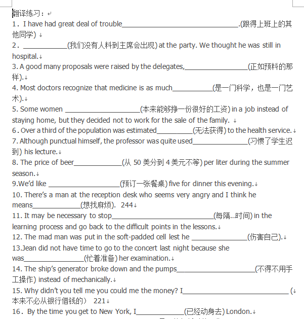 大学英语四级考试翻译练习50题 word下载