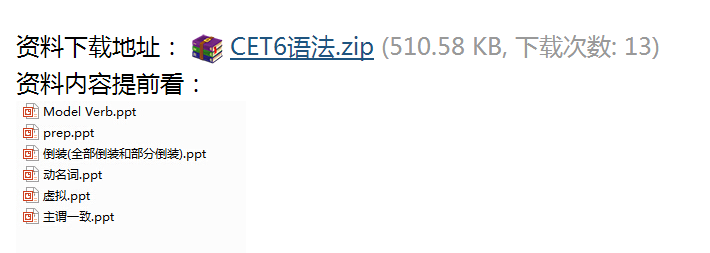 需要英语六级语法的童鞋看过来 RAR下载