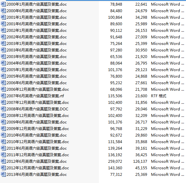 2000年-2013年六级真题以及答案汇总