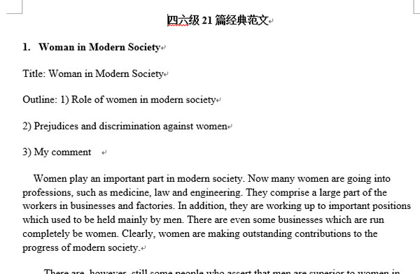 四级考试在即,你准备得怎么样了?现在新东方在线英语四级频道把英语四级考试21篇范文复习材料奉献给你,希望能给你有效的帮助!还等什么呢?快来下载吧!