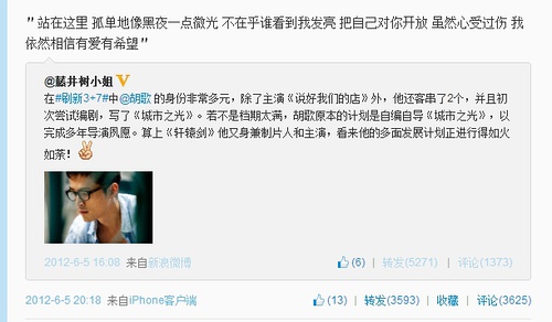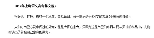 胡歌在2012年高考前发的微博正好押准上海高考作文题“微光”。