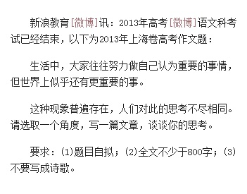 2013年,高考前两天他回的一条微访谈微博,又压中了上海高考作文题……