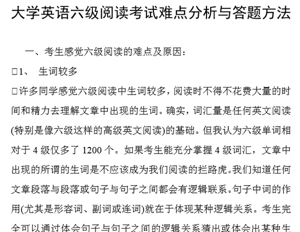 六级考试在即,你准备得怎么样了?现在新东方在线英语六级频道把英语六级阅读必备技巧复习材料奉献给你,希望能给你有效的帮助!还等什么呢?快来下载吧!