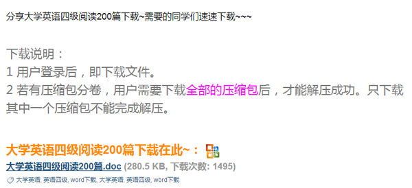 四级考试在即,你准备得怎么样了?现在新东方在线英语四级频道把英语四级阅读200篇复习材料奉献给你,希望能给你有效的帮助!还等什么呢?快来下载吧!