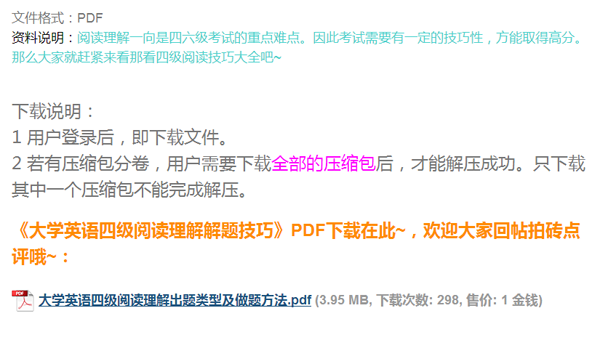 英语四级阅读理解做题技巧 PDF下载