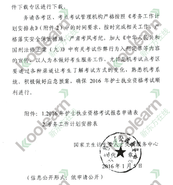 点击查看国家卫计委人才交流服务中心关于2016年护士执业资格考试考务工作安排的具体通知。