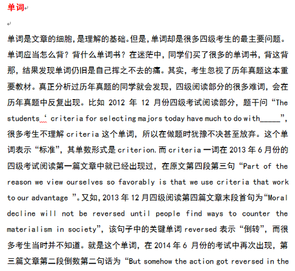 四级考试在即,你准备得怎么样了?现在新东方在线英语四级频道把英语四级阅读备考复习材料奉献给你,希望能给你有效的帮助!还等什么呢?快来下载吧!