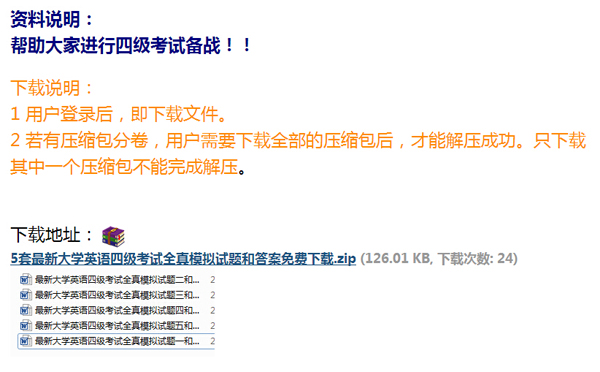 2 若有压缩包分卷,用户需要下载全部的压缩包后,才能解压成功。只下载其中一个压缩包不能完成解压。