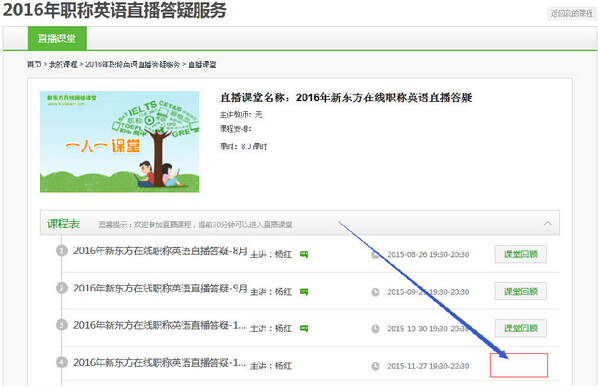 2. 进入课堂后,选择“2016年职称英语直播答疑服务”,找到3月的直播答疑,点击“进入直播”即可听课。