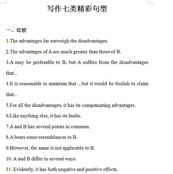 六级考试在即,你准备得怎么样了?现在新东方在线英语六级频道把英语六级写作7类精彩句型复习材料奉献给你,希望能给你有效的帮助!还等什么呢?快来下载吧!