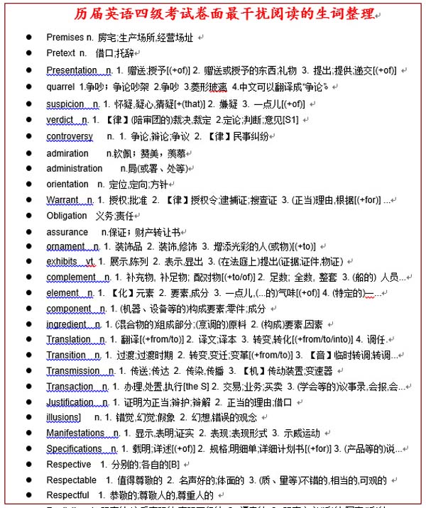 四级考试在即,你准备得怎么样了?现在新东方在线英语四级频道把历年英语四级最干扰阅读的生词复习材料奉献给你,希望能给你有效的帮助!还等什么呢?快来下载吧!