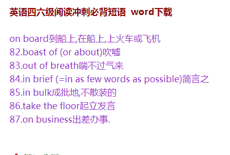 2016年6月英语六级阅读冲刺必背短语下载