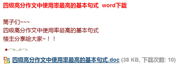 四级考试在即,你准备得怎么样了?现在新东方在线英语四级频道把四级作文中使用率最高的基本句式复习材料奉献给你,希望能给你有效的帮助!还等什么呢?快来下载吧!