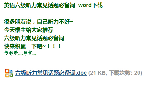 六级考试在即,你准备得怎么样了?现在新东方在线英语六级频道把英语六级听力常见话题必备词汇复习材料奉献给你,希望能给你有效的帮助!还等什么呢?快来下载吧!