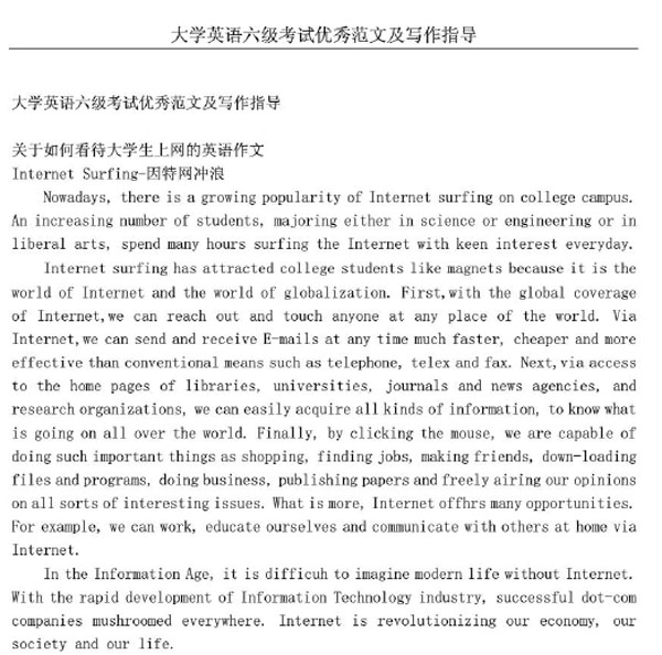 2016年6月英语六级作文优秀范文下载