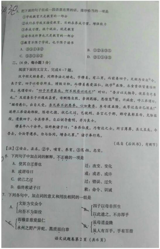 2016年绵阳市中考语文试卷真题及答案