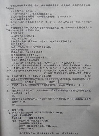 本文关键字: 湖南永州中考语文试题及答案 2016中考