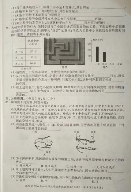 本文关键字: 湖南邵阳中考生物试题及答案 2016中考